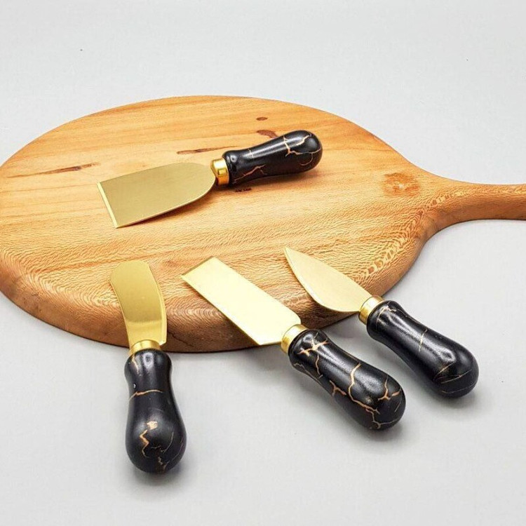 ست کارد صبحانه خوری ماربل مشکی تیغه طلایی ابزار صبحانه خوری 4 تکه ست چاقو صبحانه خوری