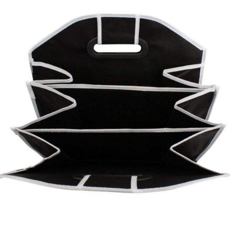 کیف لوازم صندوق عقب خودرو ،با قابلیت تاشدن و اشغال کمترین فضای ممکن . کیف تاشو لوازم صندوق عقب ، تولید شده از جنس پارچه می باشد و مناسب جهت تفکیک و نظم دادن وسایل داخل صندوق خودرو است . در دو طرف کیف دسته هایی تعبیه شده است که به شما امکان جابه جایی آن را می دهد .