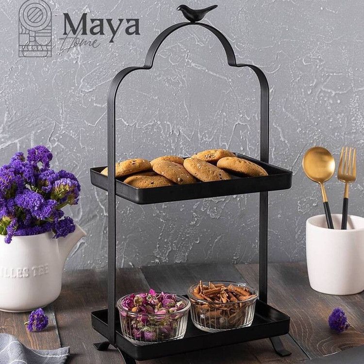 شیرینی خوری فلزی 2طبقه دسته طرح پرنده