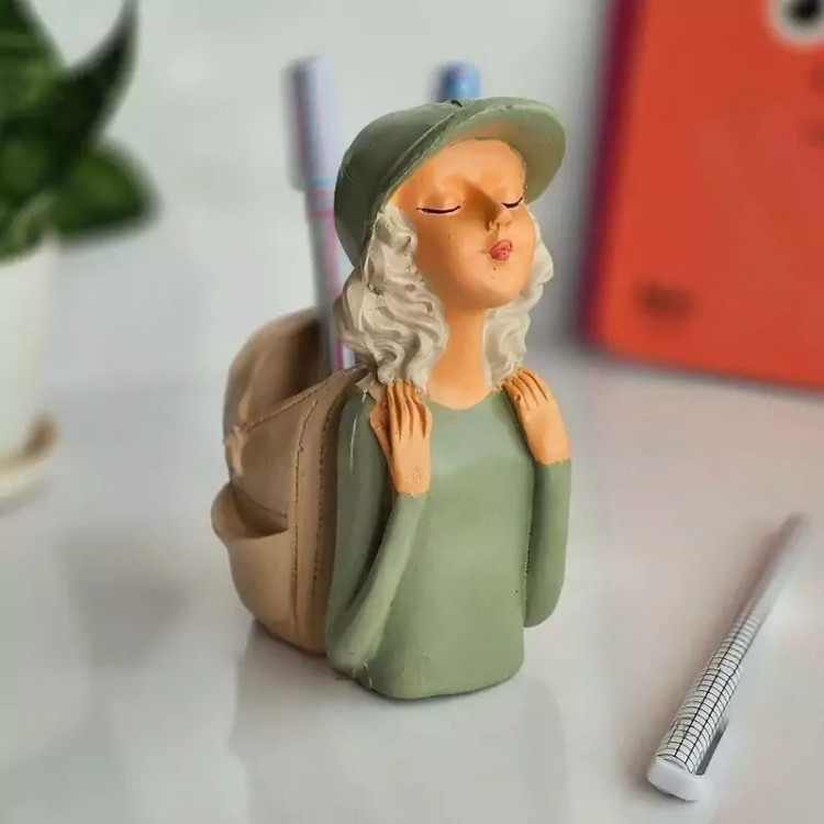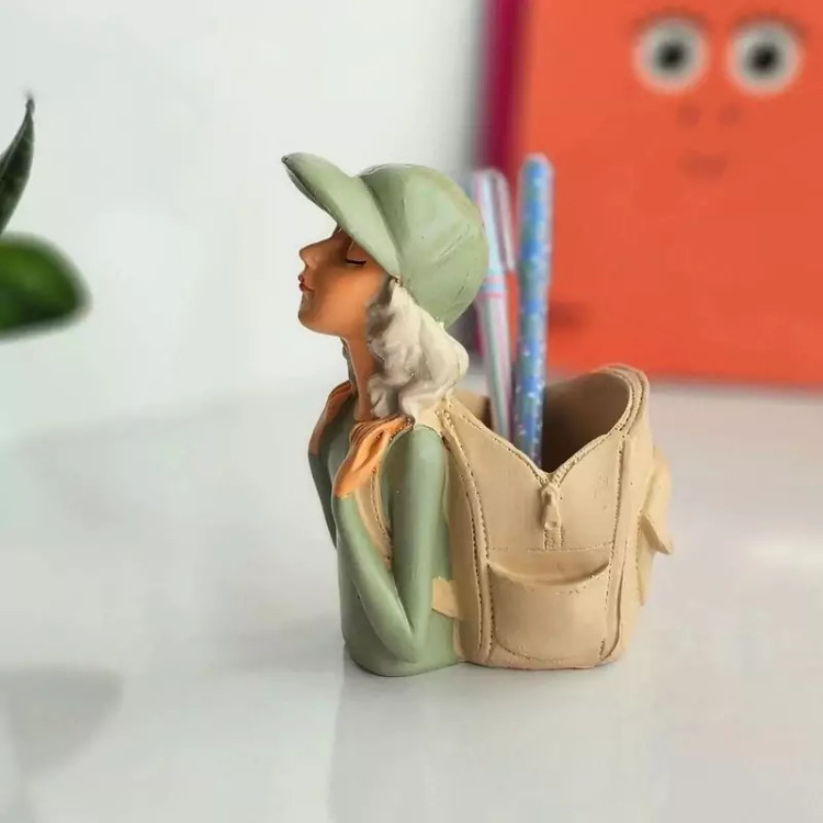 جا مدادی رو میزی طرح کوله پشتی و دختر جا قلمی رو میزی
