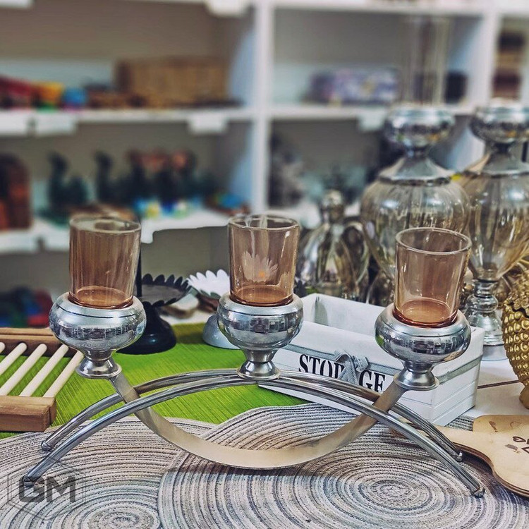 جاشمعی فلزی نقره ای۳ شعله قایقی
