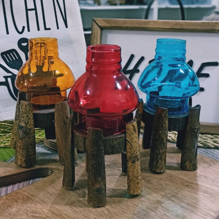 جا شمعی چوبی مدل 3 پایه به همراه حباب رنگی جاشمعی چوبی