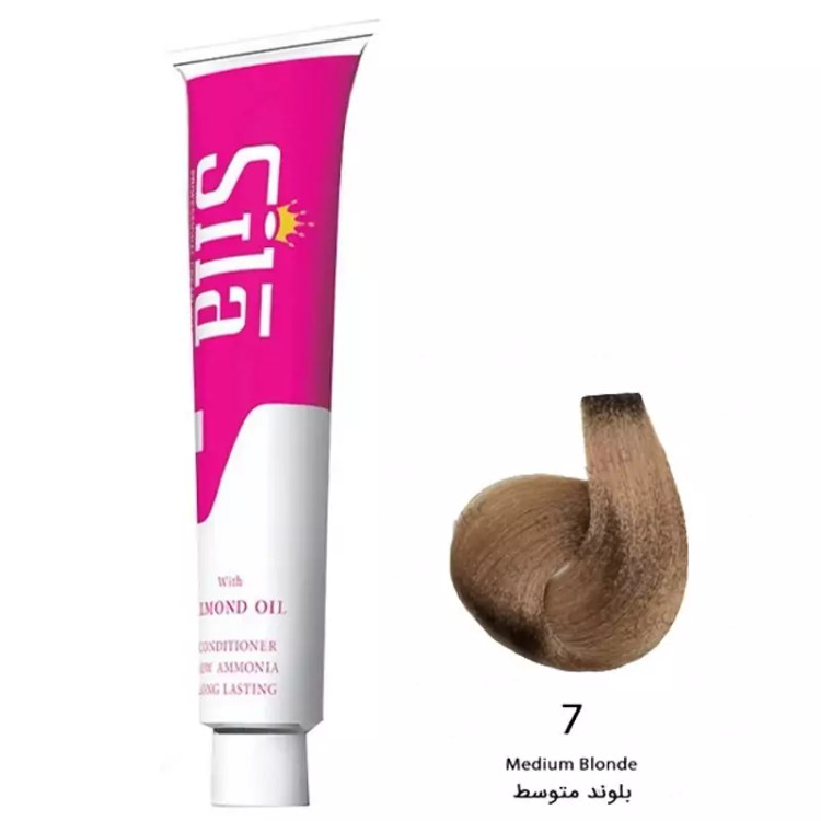 رنگ موی سیلا شماره 7 بلوند متوسط حجم 120 میلی: حاوی روغن بادام و نرم کننده با درصد آمونیاک کم و دارای ویتامین های B و C می باشد.همچنین رنگ موی سیلا علاوه بر پوشش موهای سفید درخشان کننده مو بوده و به دلیل دارا بودن لوسیون محافظت کننده دارای ماندگاری بالا می باشد.