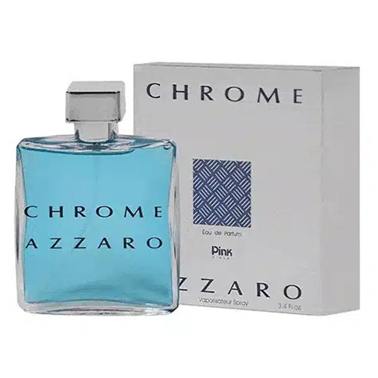 ادو پرفیوم مردانه پینک آزارو کروم حجم 100 میلی لیتر: استفاده از این عطر تند و خنک در روزهای داغ تابستانی، حالوهوای شما را بهکلی عوض میکند. بطری این عطر خیلی شیک و ساده طراحی شد است و بهراحتی در دست جا میشود. میتوانید روی بطری یعنی در قسمت بالایی آن، نام CHROME و در پایین آن، نام AZZARO را مشاهده کنید که بهصورت برجسته کار شد است. در بطری با جنس فلزی و رنگ نقرهایاش، هارمونی رنگی مناسبی با گردن فلزی آن ایجاد کرده است. مایع آبیرنگ درون بطری، بهوضوح از روی شیشهی شفاف آن دید میشود.