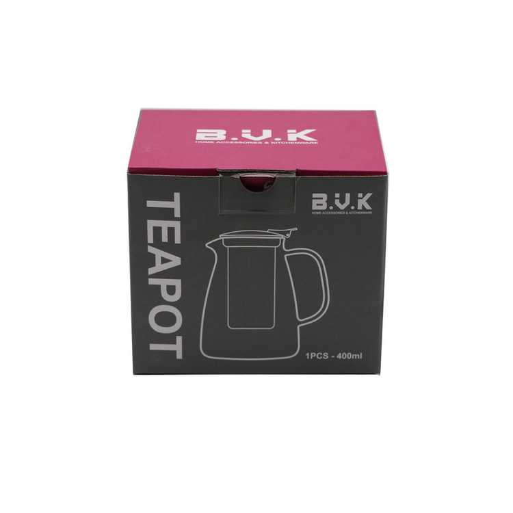 قوری تمام پیرکس 400ml قابل استفاده روی شعله ی مستقیم و اجاق های ماکروویو قابل شستشو در ماشین ظرفشویی طراح برند بی.وی.کی بدون اضافه کردن کادمیوم یا سرب. بسیار زیبا و با دوام پذیرایی مدرن با قوری های بی.وی.کی