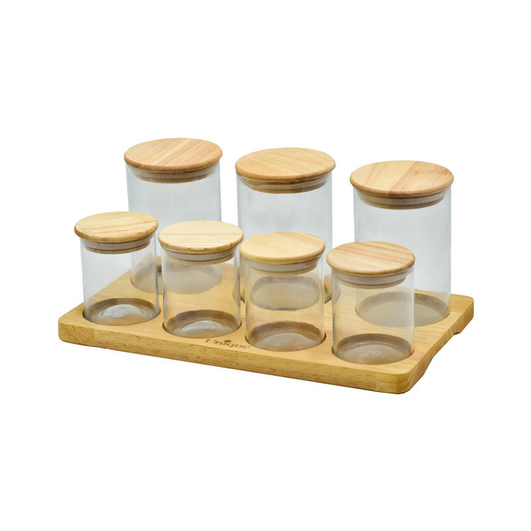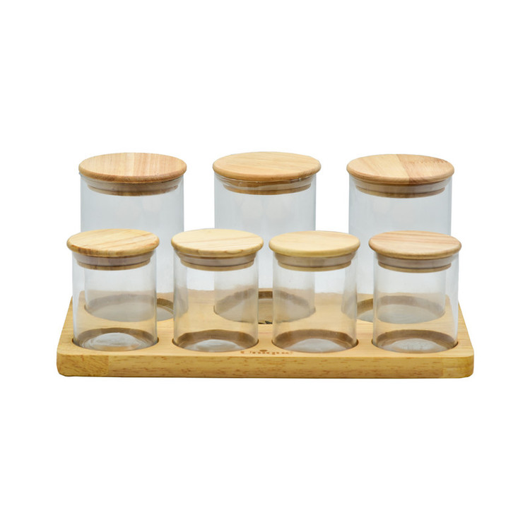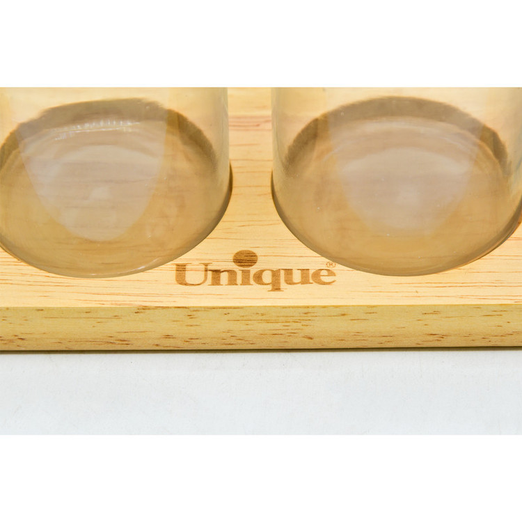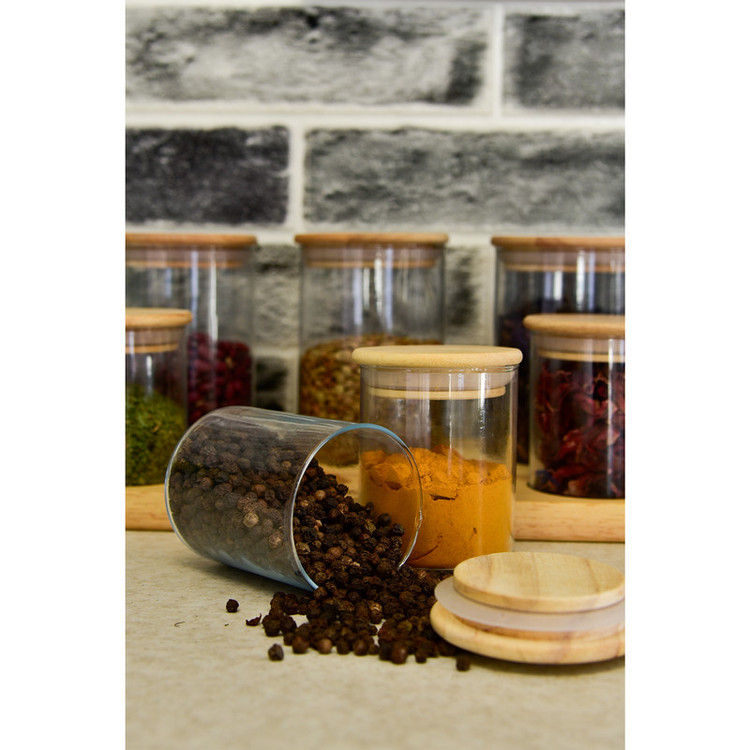 ست پاسماوری یونیک دارای 7 بانکه شیشه ای با درب چوبی و یک استند نگهدارنده از جنس بامبو می باشد. 3 عدد از بانک ها سایز بزرگ و مناسب نگهداری قند شکر و چای هستند و 4 عدد بانکه کوچک مخصوص نمک، زردچوبه و ادویه های دیگر می باشد. بدنه شفاف این جا ادویه باعث می شود که بدون برداشتن درب اجزای داخل آن به خوبی قابل مشاهده باشند. همچنین درب چوبی این محصول زیبایی ظاهری آن را دو چندان کرده است. چوب استفاده شده در پایه و درب این محصول بسیار مرغوب و با کیفیت میباشد. بدنه شیشه ای این ست ادویه قابل شستشو در ماشین ظرفشویی بوده اما قسمت های چوبی آن قابل شستشو نمی باشند. توجه داشته باشید که لوازم چوبی آشپزخانه نباید مدت زیادی در رطوبت یا آب قرار بگیرند.