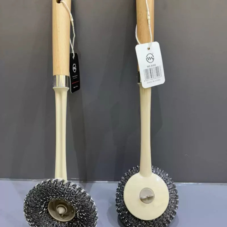 فرچه آشپزخانه اسکرابر سیم دار وارداتی ws مناسب شستشوی قابلمه و سینک دسته بامبو
