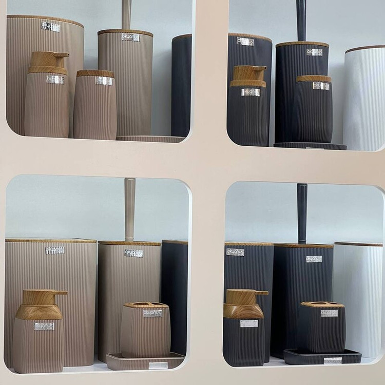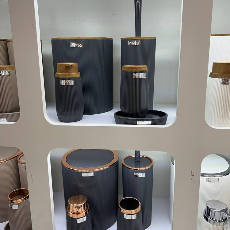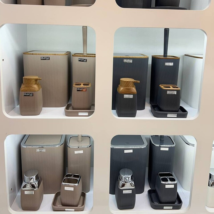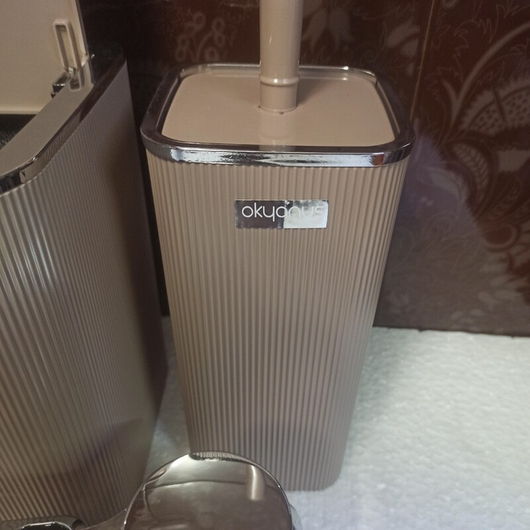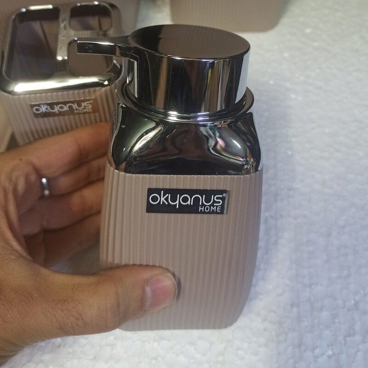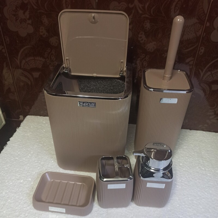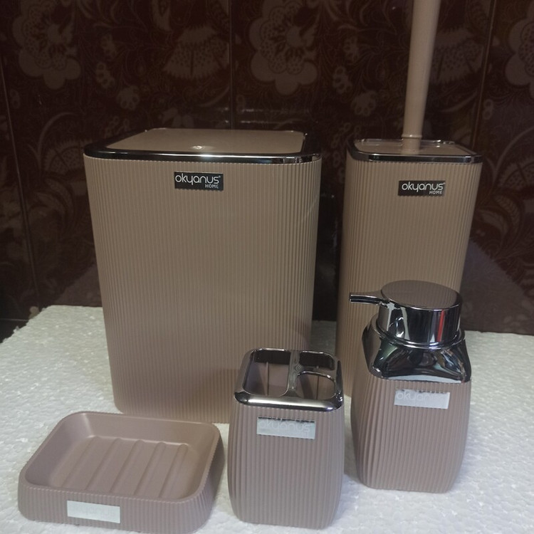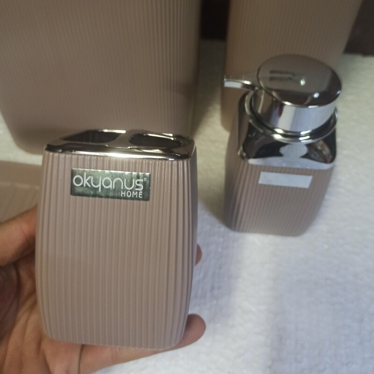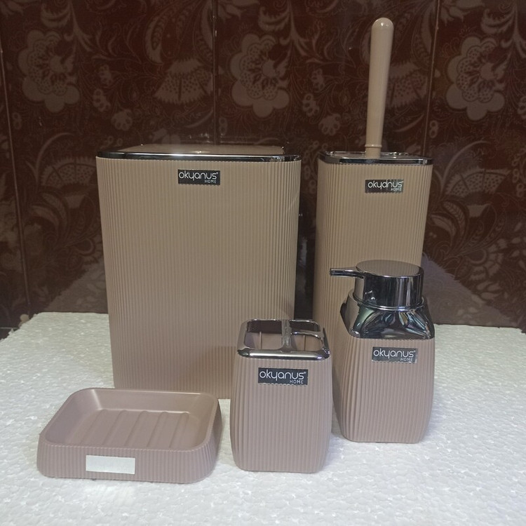 ست سرویس بهداشتی okyanus اقیانوس ترکیه پنج پارچه نسکافه ای کرم چهارگوش با لبه سیلور