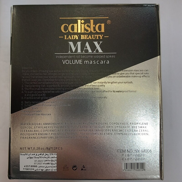 از دیگر ویژگی های ریمل گیاهی حجم دهنده کالیستا نقره ای،.ضد آب بودن و ماندگاری بالای آن بر روی مژه ها می باشد.