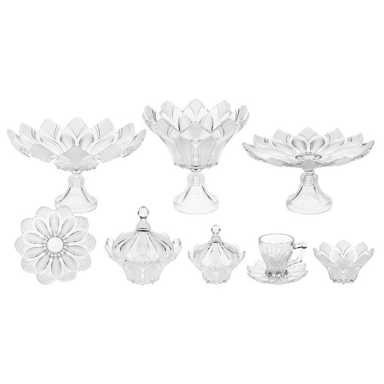 ظروف بلوری جزو ظروفی محسوب میشوند که هم برای سرو و پذیرایی کاربرد دارد و هم جنبهی دکور و زیبایی دارند. ظروف کریستالی با طراحی زیبا و بینظیری که دارند نظر هر بینندهای را به سمت خود جذب میکنند. البته باید به این نکته نوجه کنید که شیشه یا کریستال دارای تفاوتهای بسیاری هستند که در موقع خرید باید خیلی دقت نمایید. یکی از ویژگیهای کریستال حالت منشوری آن است که وقتی در مجاورت نور قرار میگیرد حالت رنگینکمان پیدا میکند. سرویس 31 پارچه ظرف سرو «Lisa Mori» (لیزا موری) مدل «7G1W» شامل: 6 عدد فنجان و نعلبکی، 1 عدد قندان، 6 عدد پیشدستی، 6 عدد کاسه، 1 عدد شکلاتخوری، 1 عدد آجیلخوری، 1 عدد میوهخوری و 1 عدد شیرینیخوری که میتوان گفت یک سرویس پذیرایی کامل است. از دیگر ویژگیهای ظروف کریستال میتوان به شفافیت، برشپذیری و ظریف بودن آن اشاره کرد. لیزا موری یکی از برندهای مشهور و شناخته شده در زمینه تولید ظروف بلوری است. همچنین این برند دارای کیفیتی ممتاز و شکل ظاهری زیبا و بینظیر است. با این سرویس بلور مهمانیهای خود را زینت ببخشید و لذت یک پذیرایی زیبا را تجربه نمایید.