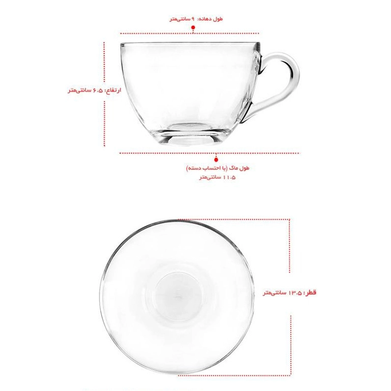 قطر دهانه فنجان حدود 9 سانتی متر - ارتفاع فنجان حدود 6/5 سانتی متر - گنجایش 220 میلی لیتر