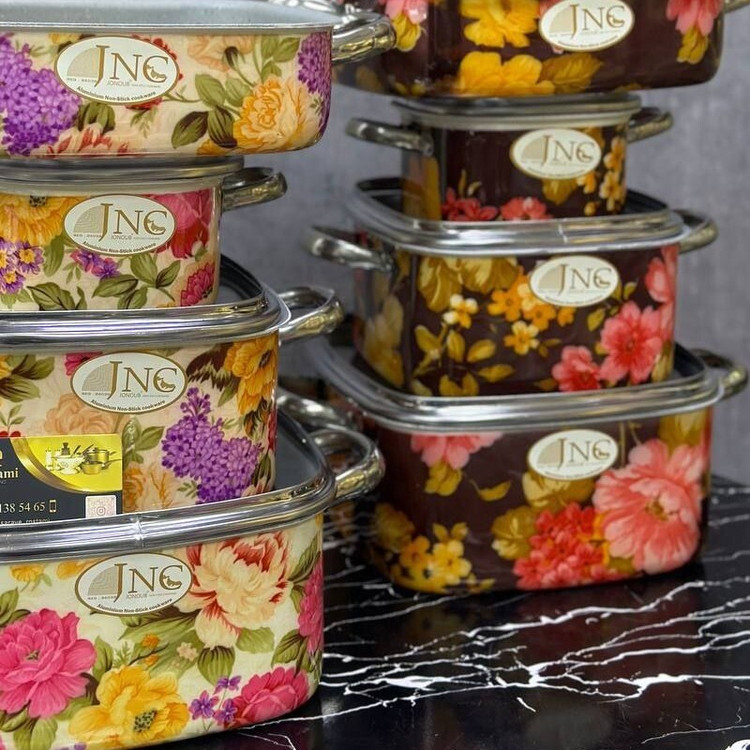 سرویس قابلمه 7پارچه گلدار در طرح های مختلف با کیفیت عالی هزینه ارسال کالا ب احترام ب عهده مشتری عزیز میباشد