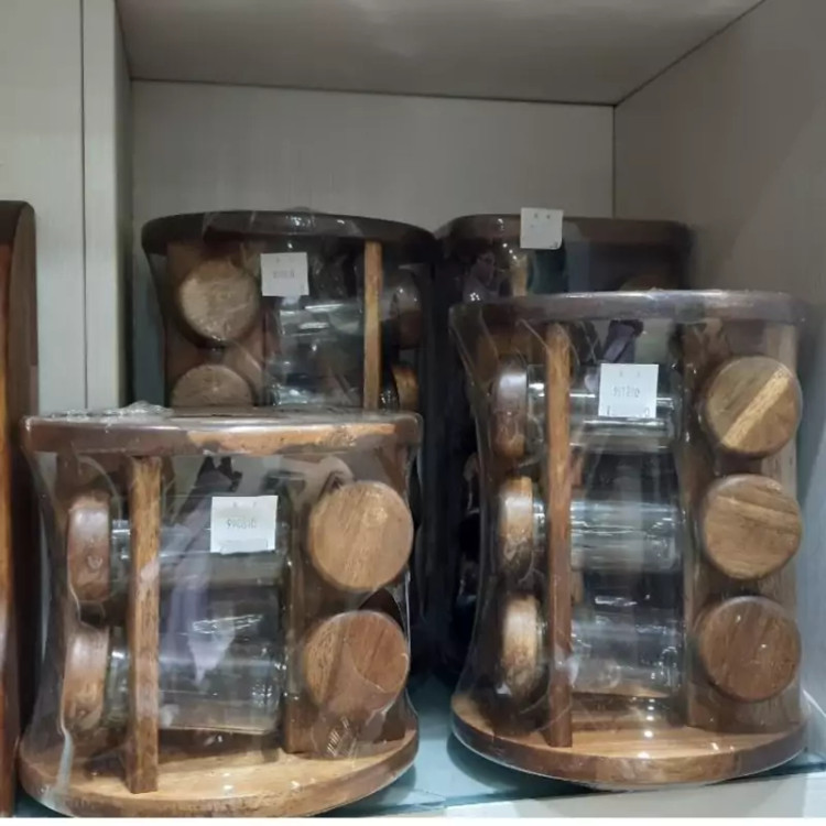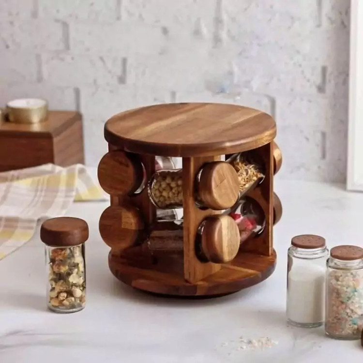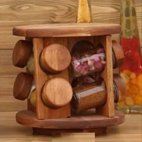 جا ادویه ایستاده گرد گردان 8 تایی چوب تیره(آکاسیا) کد990810