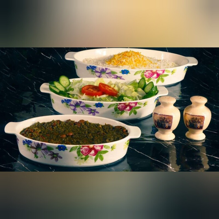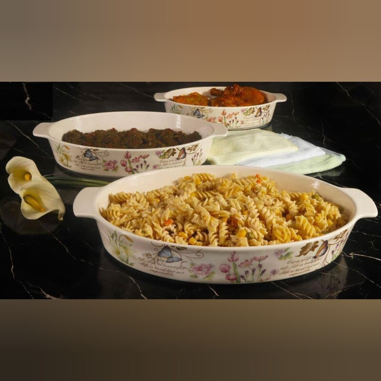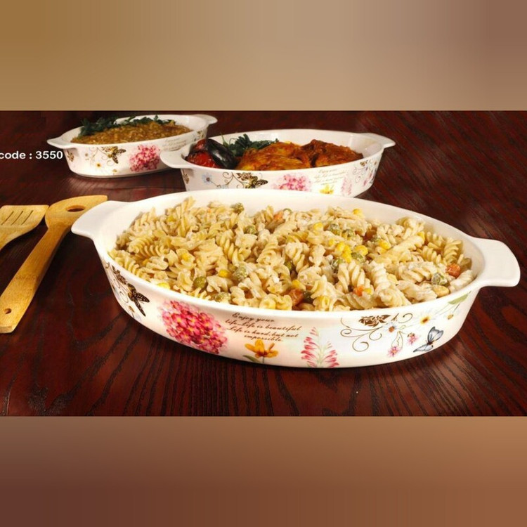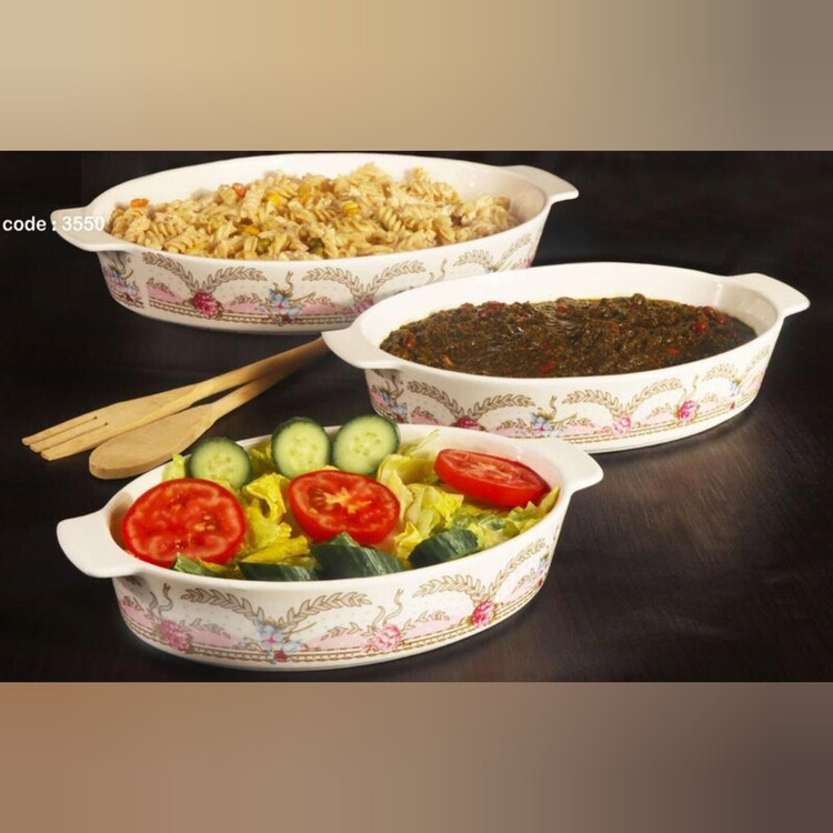 ست 3 عددی تابه های سرامیکی بیضی در 6 طرح مناسب فر و مایکروفر