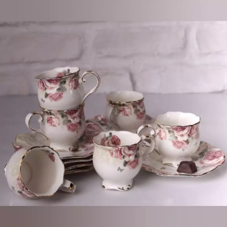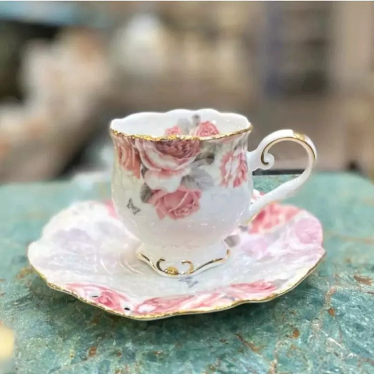 چای خوری لمونژ طرح فرشته و گل رز وارداتی ( چایخوری قهوه خوری)