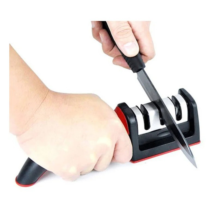 سیستم تیز کردن سه مرحله ای: اولین شیار از جنس تراش الماس ، تیغه آسیب دیده را ترمیم و صاف می کند و قبل از تیز شدن در شیار دوم وی شکل آن را بازیابی می کند. در نهایت ، شکاف سوم به خوبی تنظیم شده است تا سطحی تیزی داشته باشد. با کمک این محصول میتوانید چاقو های غیرقابل استفاده خود را دوباره تیز کنید و مانند روز اول از ویژگی تیز و برنده آنها بهره ببرید