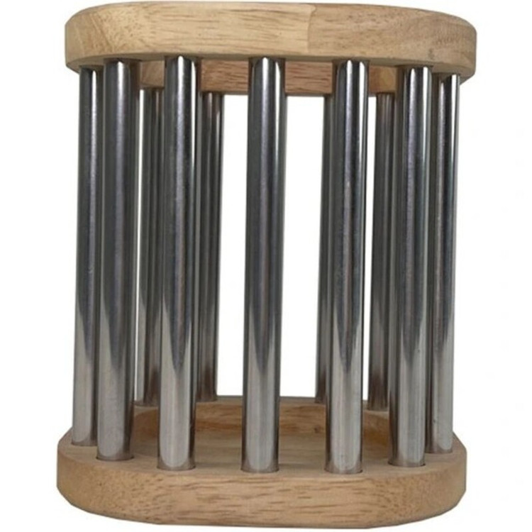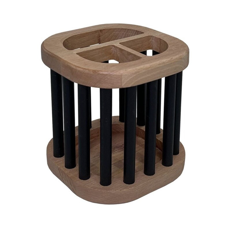 جا قاشقی میله ای مقسم دار ترکیبی از چوب رابر و میله هایی از جنس فلز می باشد. شما می توانید این جاقاشقی را روی صفحه ی کابینت ، اوپن آشپزخانه و روی میز، جهت تعبیه قاشق و چنگال و نظم دهی به فضا استفاده نمایید. این محصول مشابه محصول جا قاشقی میله ای ساده می باشد با این تفاوت که دارای مقسم جهت تقسیم بندی ابزارهای آشپزخانه ، کفگیر ملاقه و قاشق چنگال است.