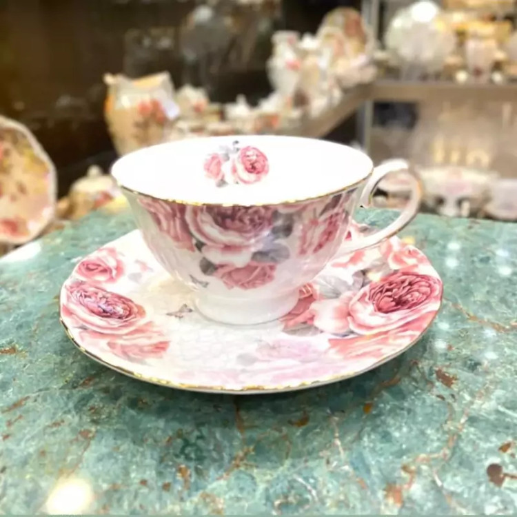 چای خوری لمونژ طرح فرشته و گل رز وارداتی ( لته خوری)