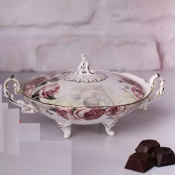 شکلات خوری بیضی دسته دار دارای پایه لمونژ گل رز