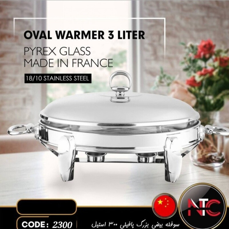 سوفله بیضی ان تی سی پافیلی بزرگ استیل نقره ای 3 لیتری( پس کرایه )