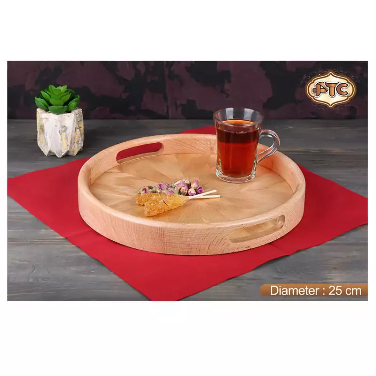 سینی چوبی گرد دسته دار بامبو سایز 25 دو رنگ تیره وروشن