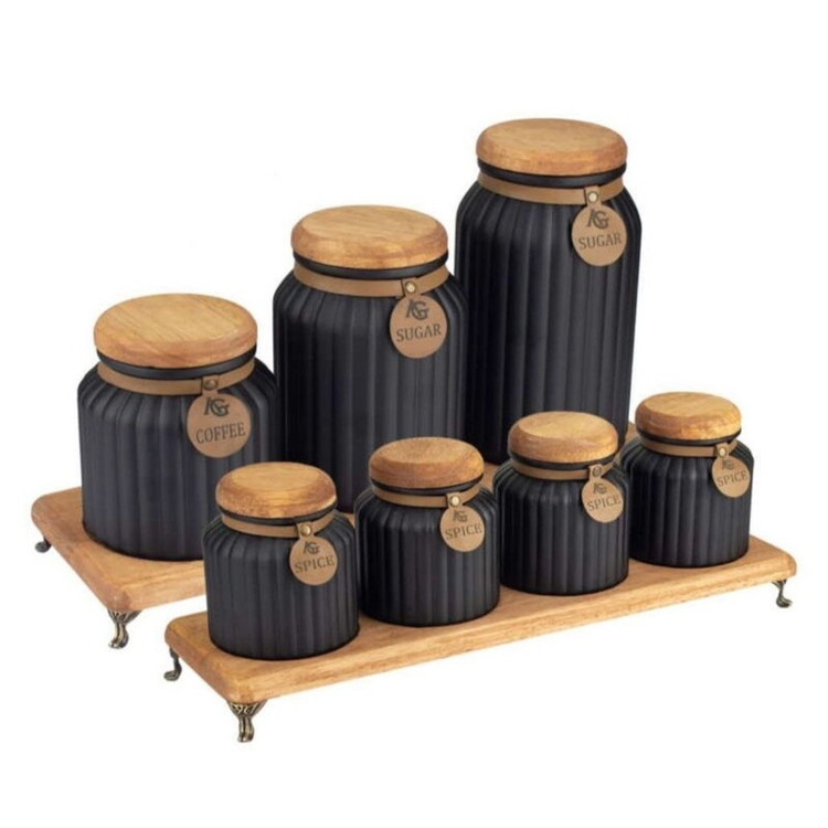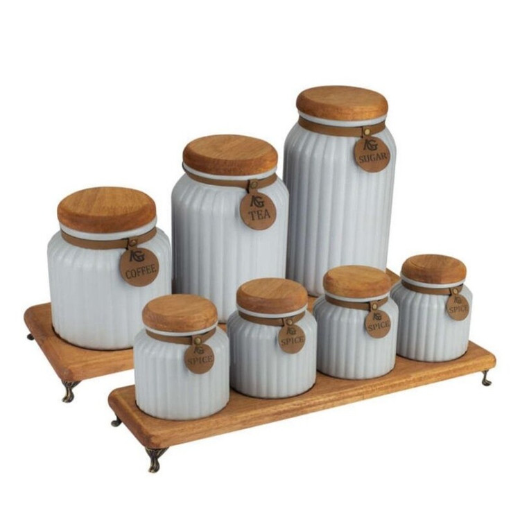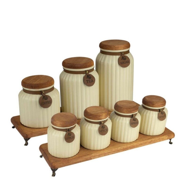 ست پاسماوری و ادویه 7 پارچه درب چوبی گلس کالر استند کامل چوب ( پس کرایه )