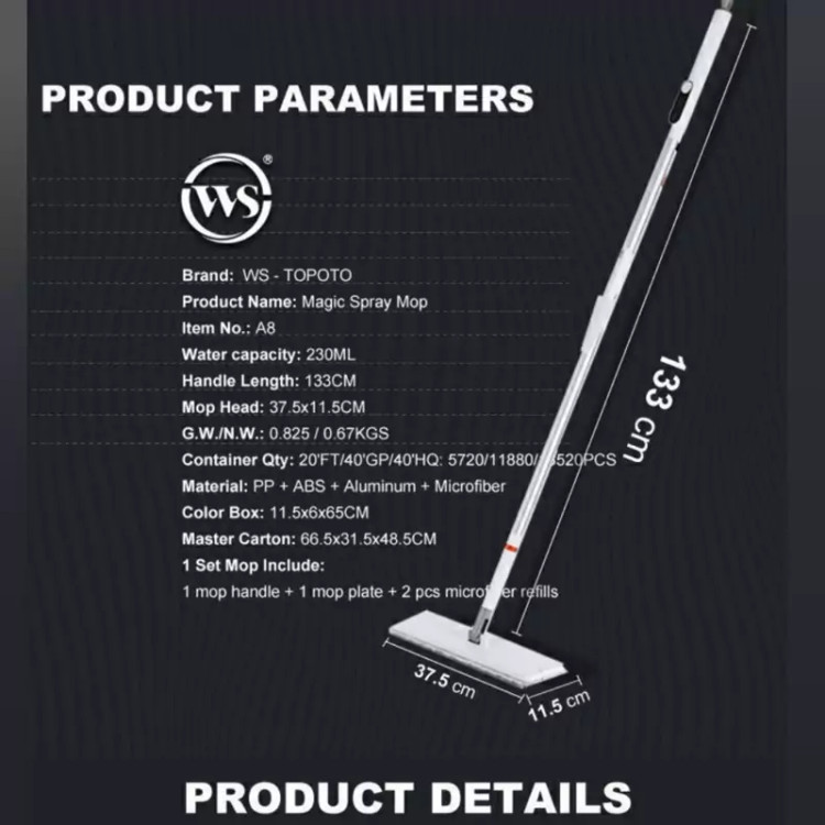 تی زمین شوی اسپری دار وارداتی ws مدل A8 (پس کرایه)