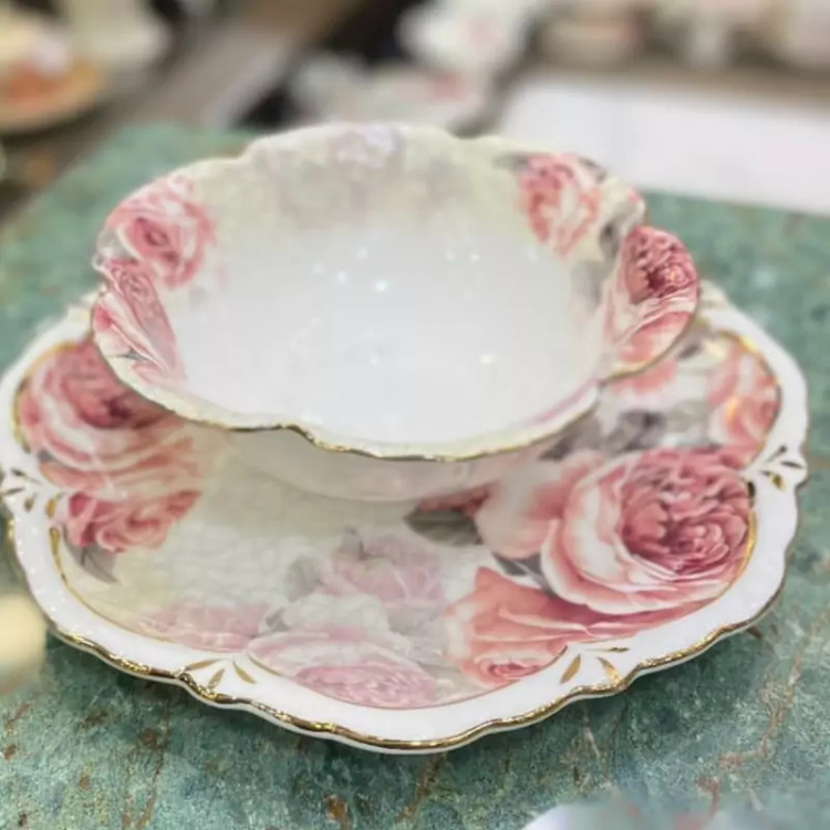 پیش دستی میوه خوری لمونژ طرح فرشته و گل رز وارداتی
