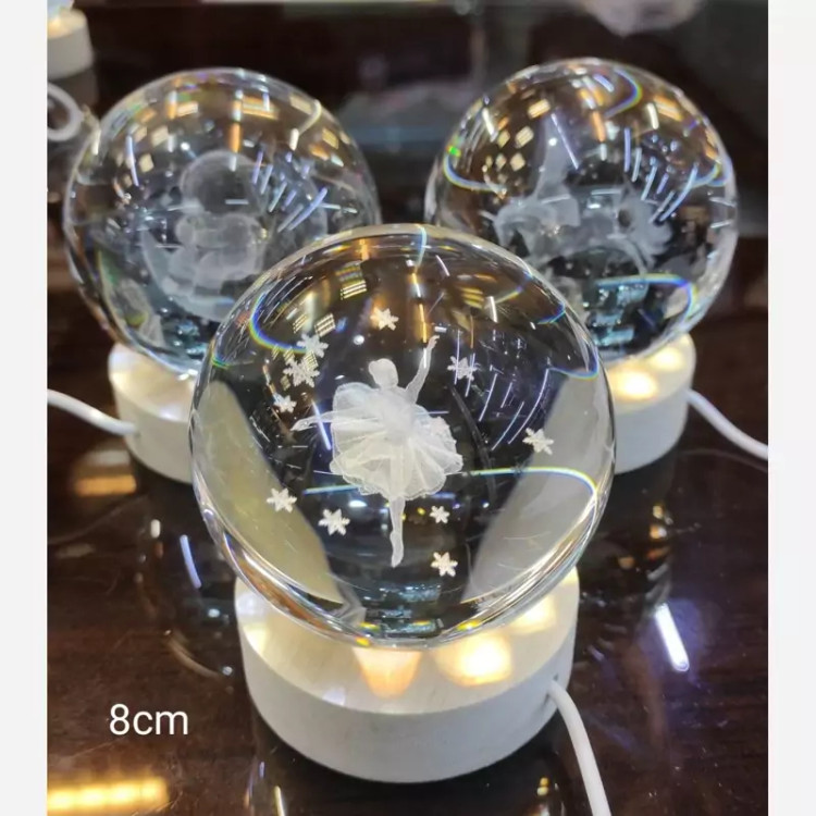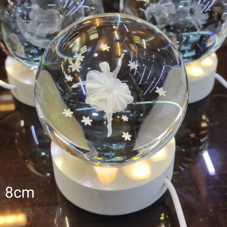 گوی کریستالی طرح دختر رقصنده ال ای دی دار چراغدار 8سانتی