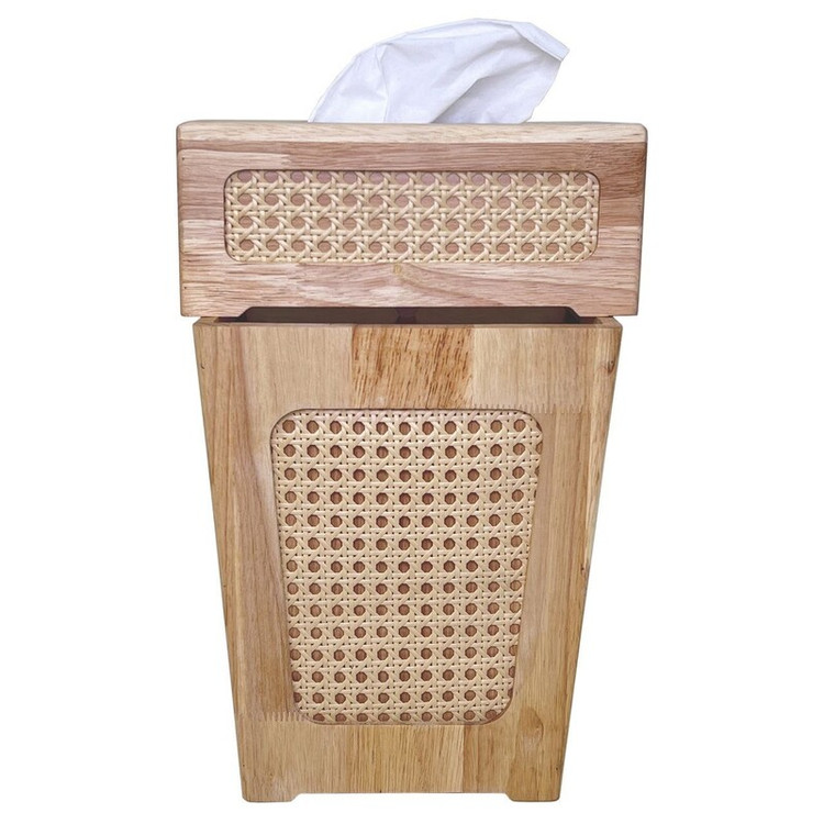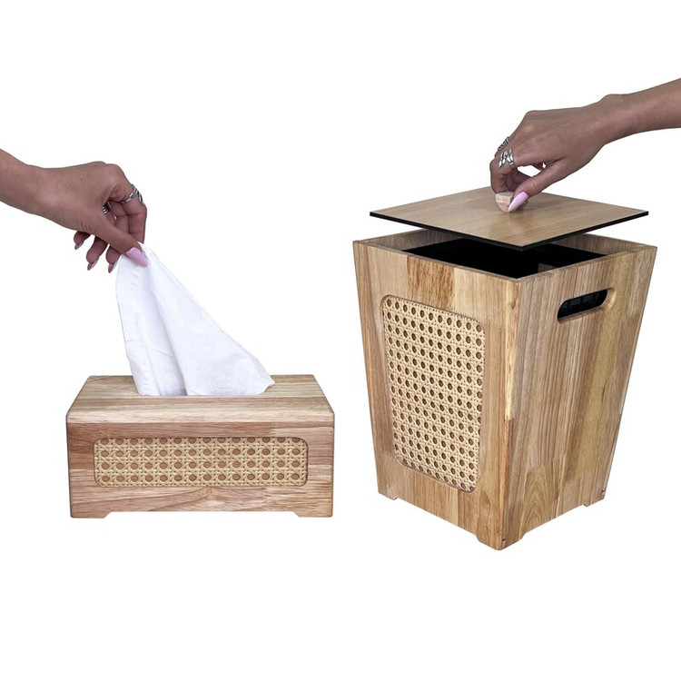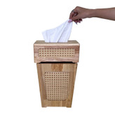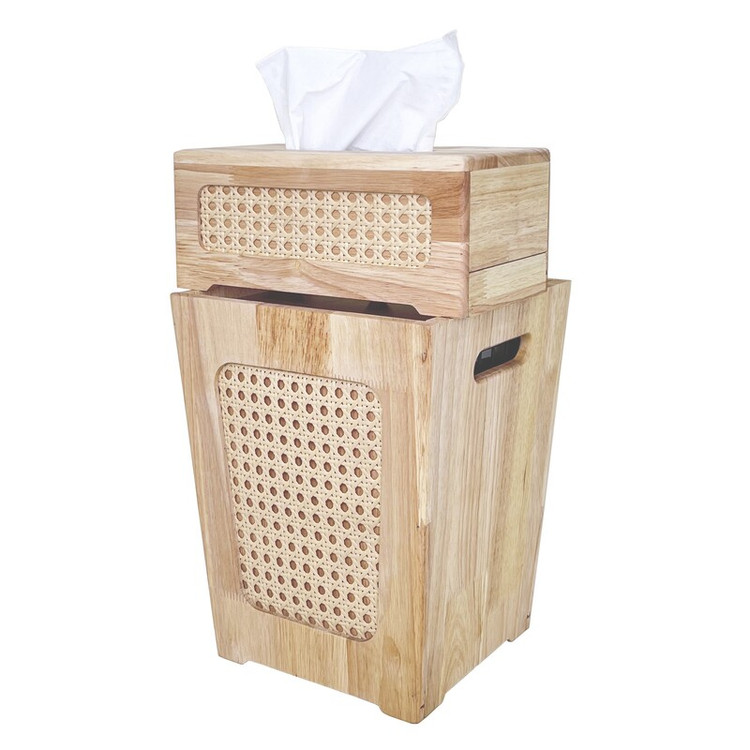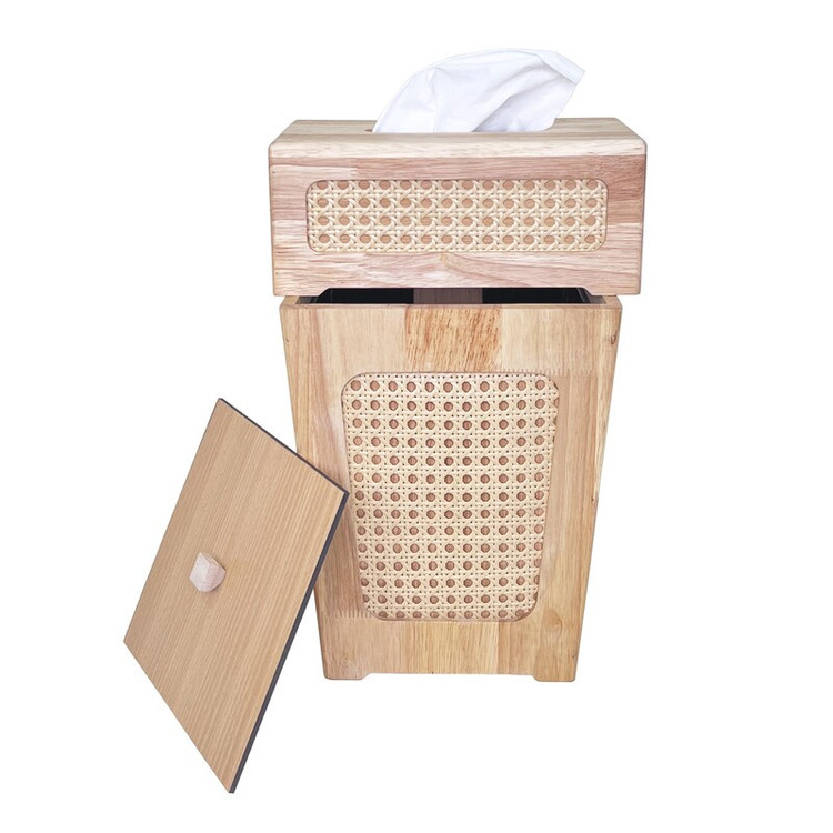 این محصول از مواردی است که در هر خانه ی ایرانی موجود می باشد. این محصولات چه بسا به دکوراسیون و زیبایی دکور منزل هم جلا می بخشند . جنس این محصول از ترکیب چوب رابر و حصیر می باشد. ارتفاع این سطل 30 سانتی متر بوده و دارای درب می باشد. جا دستمال این محصول دارای یک کشوی مخفی در کف ، جهت تعبیه راحت تر دستمال است.