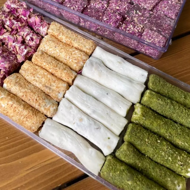 لوکوم سلطان پاشا با مغز پز پسته، طعم زعفرانی، پسته ای، وانیلی و گل محمدی