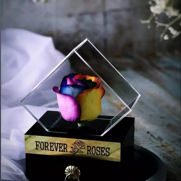 رز جاودان هفت رنگ با باکس الماس (عالیجناب)