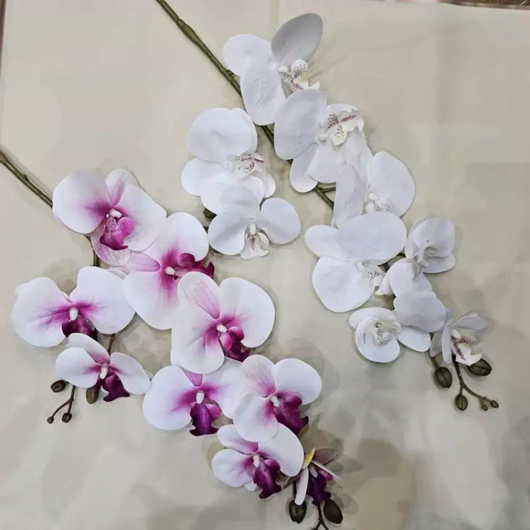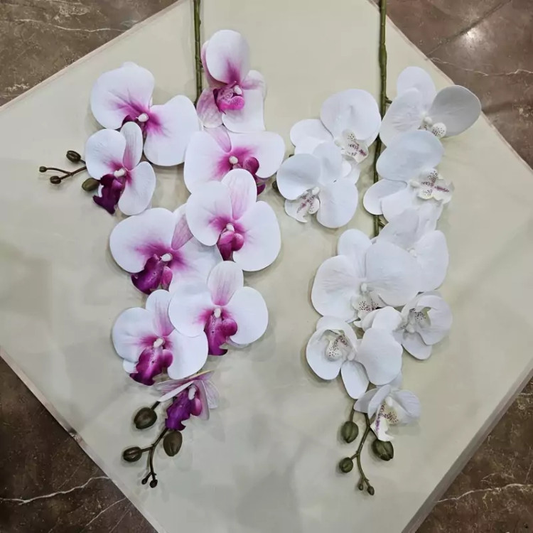 گل مصنوعی ارکیده 9 گل لمسی وارداتی دو بازو(عالیجناب)