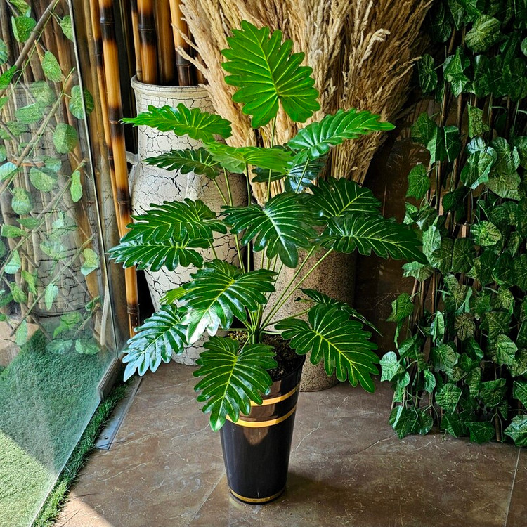 درختچه مصنوعی برگ انجیری کنگره ای لمسی وارداتی با گلدان(عالیجناب)