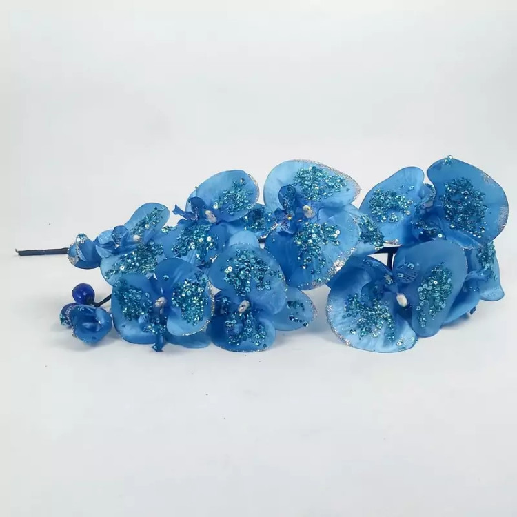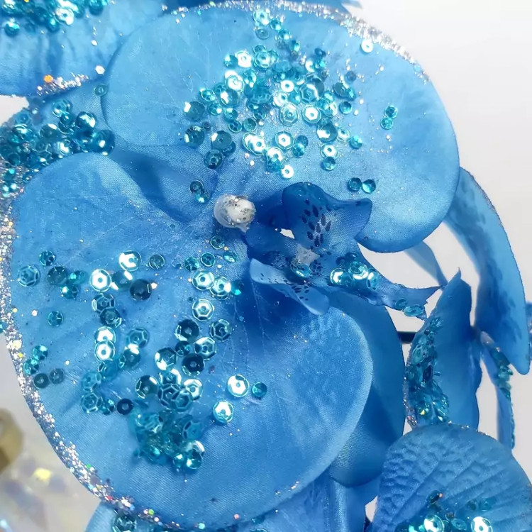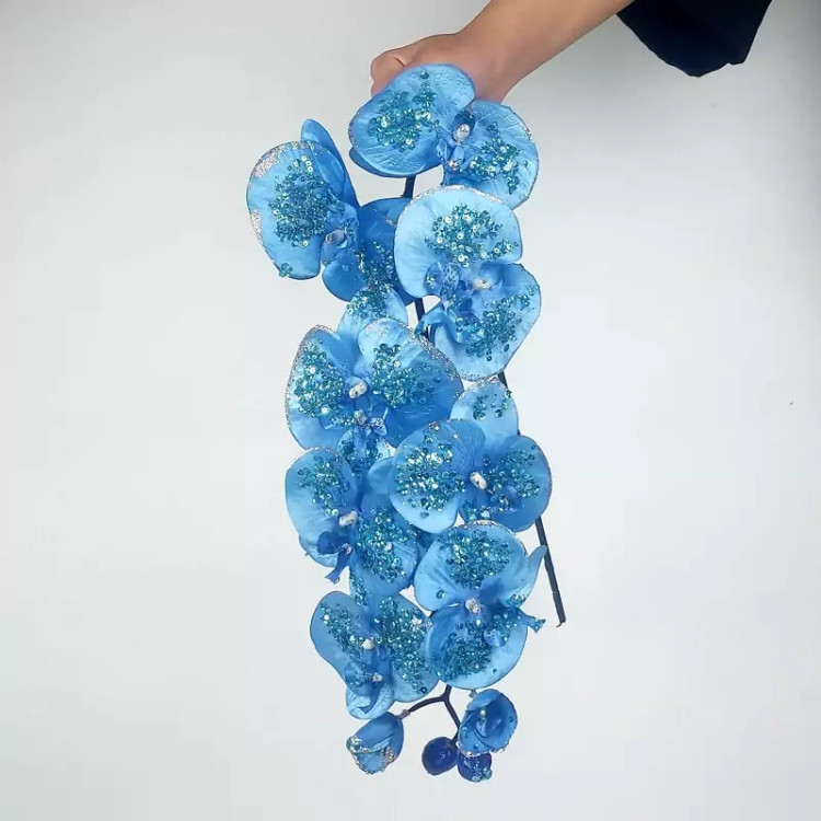 محصول کشور چین ؛ ارکیده 10 گل آبی وارداتی عالیجناب با طراحی کاردست و حالت پذیری عالی یکی از گزینه های مناسب دیزاین در دکوراسیون های سلطنتی می باشد.