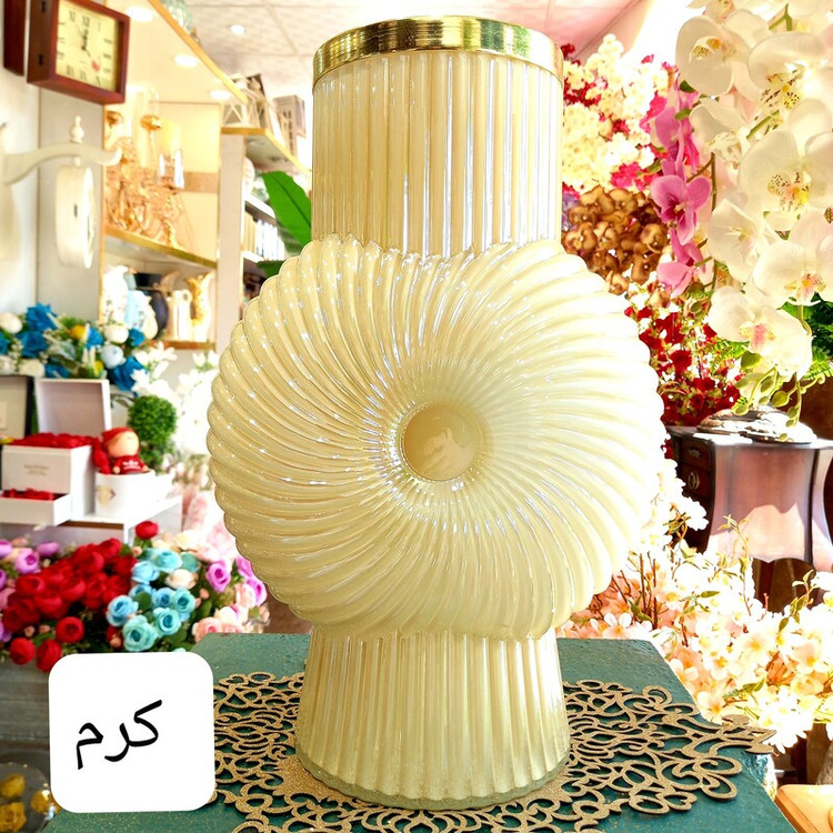 گلدان رومیزی پایه دار طرح صدف با کیفیت آبکاری لاستر و بهترین متریال ساخت در نوع خود بی نظیر می باشد ، یکی از ویژگیهای بارز گلدانهای شیشه ای لاستر عالیجناب رنگ پی وی دی مقاوم در برابر نور خورشید و مواد شوینده می باشد ، تنوع رنگی بالا و رنگ آمیزی بسیار زیبا با دهانه فلزی آبکاری شده طلایی براق و بدنه شیشه ایی ضخیم گلدانی زیبا و خاص خلق کرده که زینت دهنده گلها و دکوارسیون منزل شما عزیزان باشد .