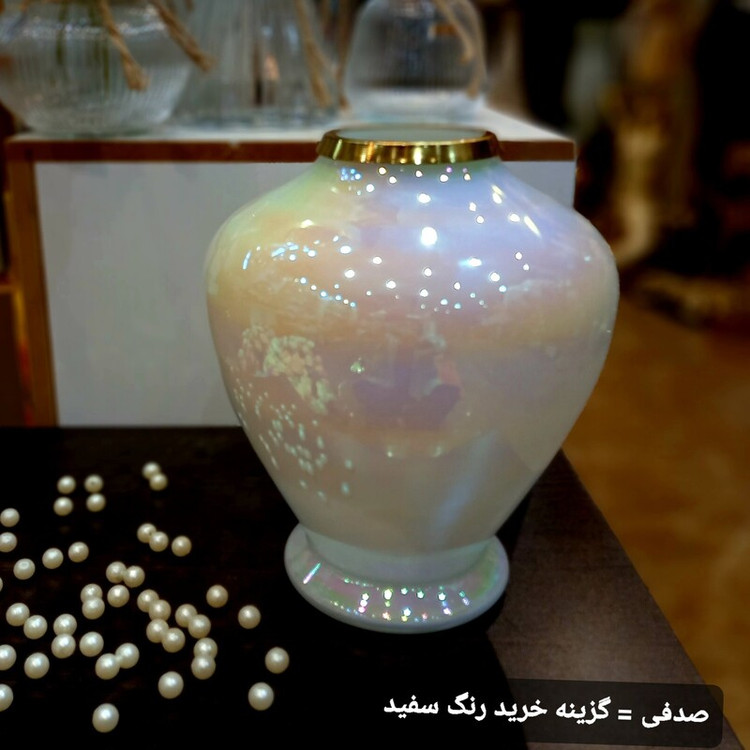 گلدان رومیزی شیشه ای آبکاری لاستر با کیفیت آبکاری عالی و بهترین متریال ساخت با کیفیت شرکتی درجه یک ، یکی از ویژگیهای بارز گلدانهای شیشه ای لاستر عالیجناب رنگ پی وی دی مقاوم در برابر نور خورشید و مواد شوینده می باشد ، تنوع رنگی بالا و رنگ آمیزی بسیار زیبا با دهانه فلزی آبکاری شده طلایی براق و بدنه شیشه ایی ضخیم گلدانی زیبا و خاص خلق کرده که زینت دهنده گلها و دکوارسیون منزل شما عزیزان باشد .