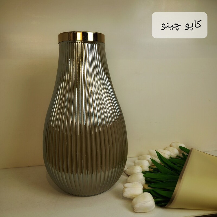 گلدان شیشه ای رنگی رومیزی آبکاری لاستر مدل شایان(عالیجناب)