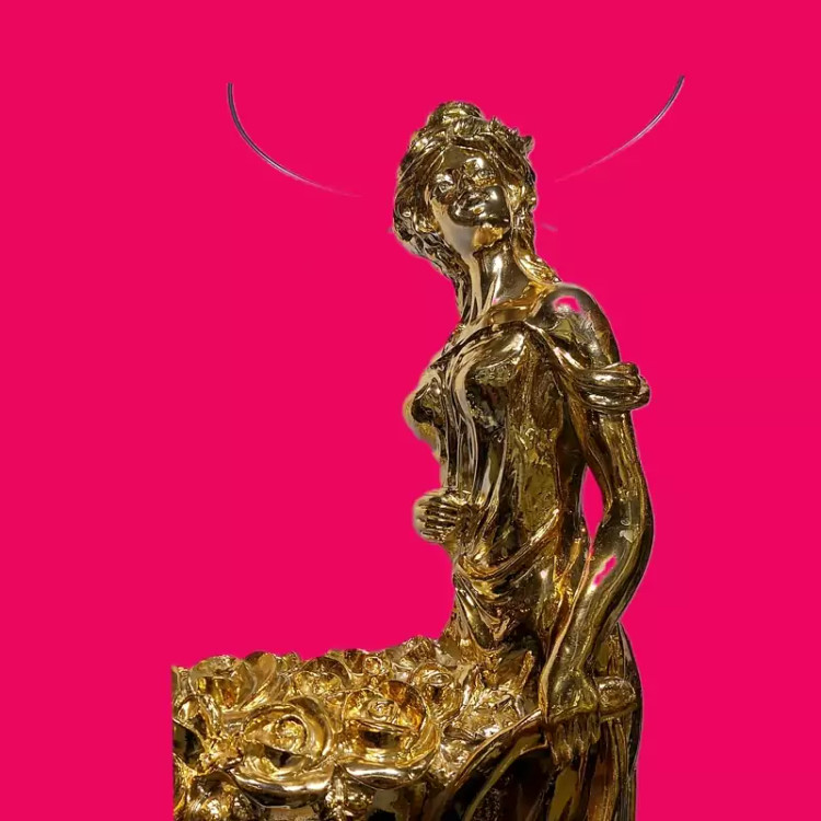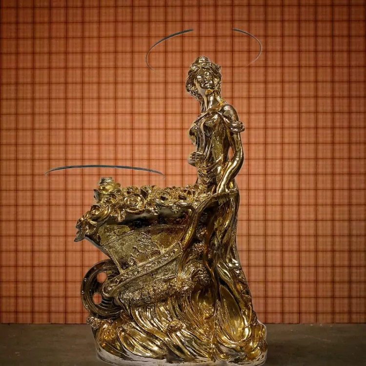 میز تلفن و دکوری دختر گلفروش دو شیشه آبکاری طلا عالیجناب