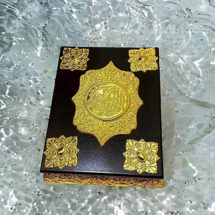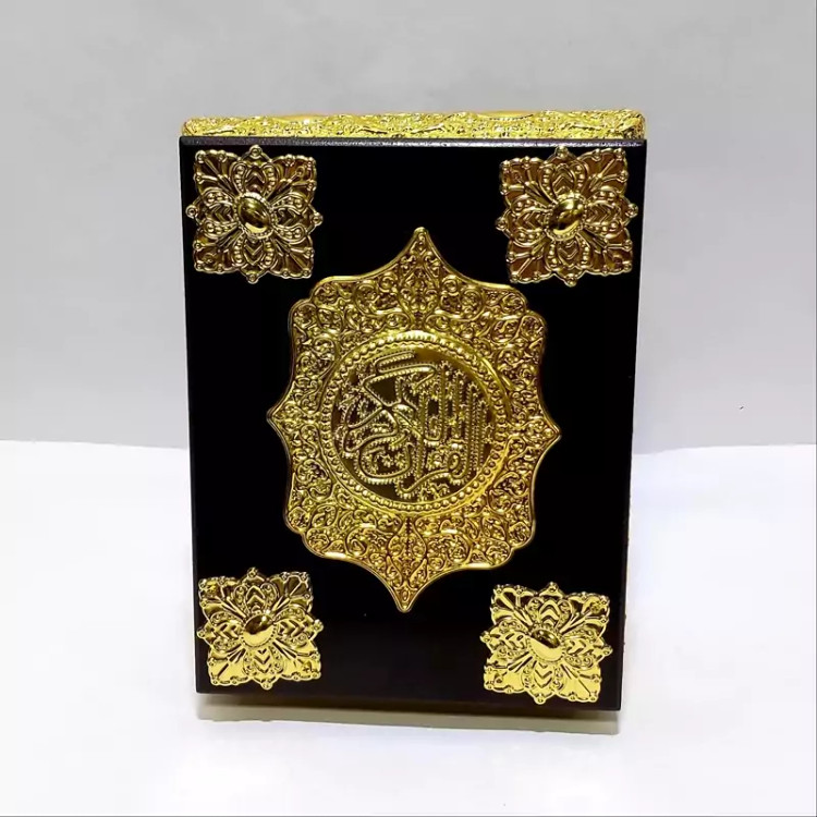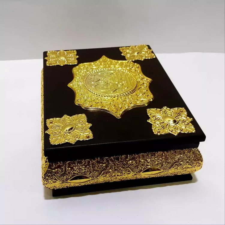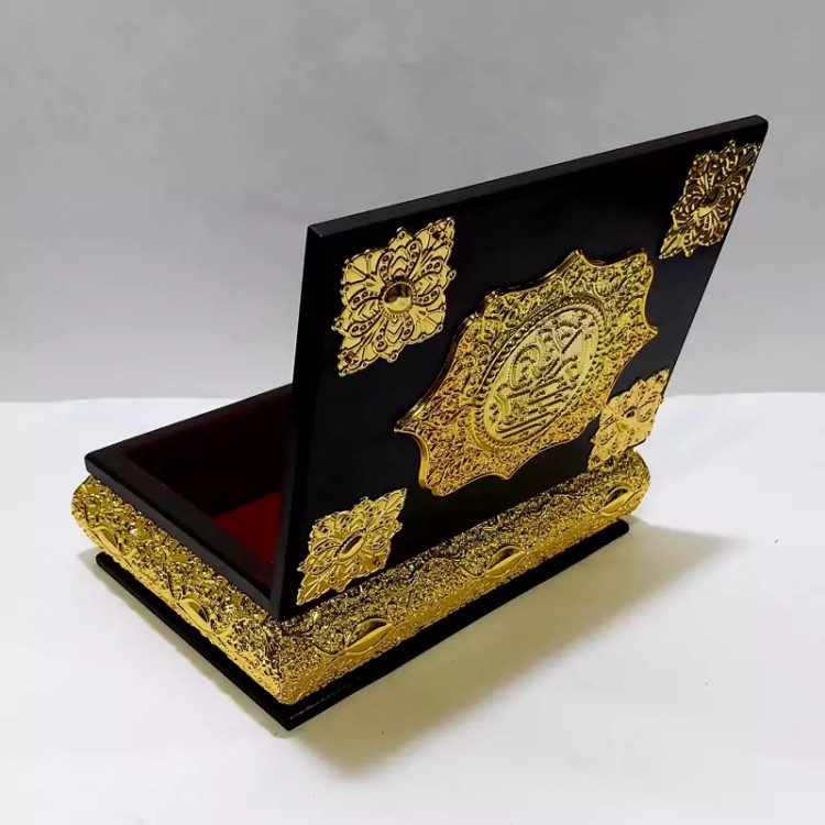 جا قرآنی لوکس چوب و فلز آبکاری طلایی خارجی سایز m22 عالیجناب