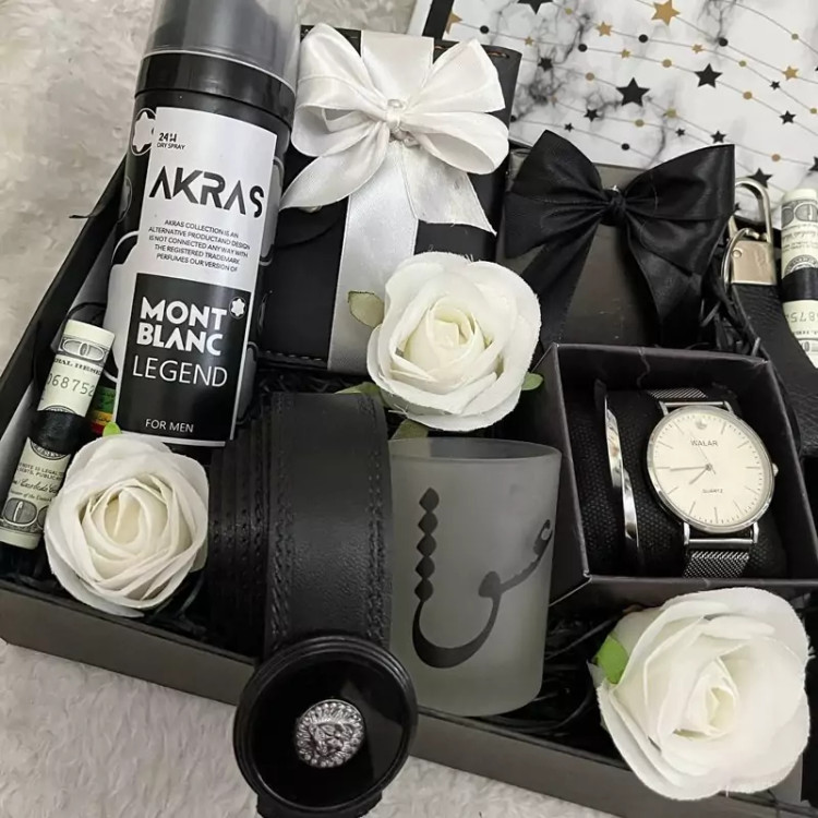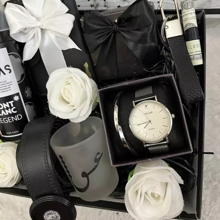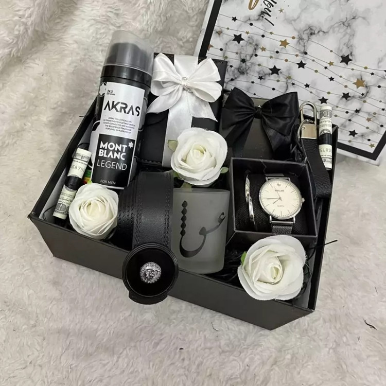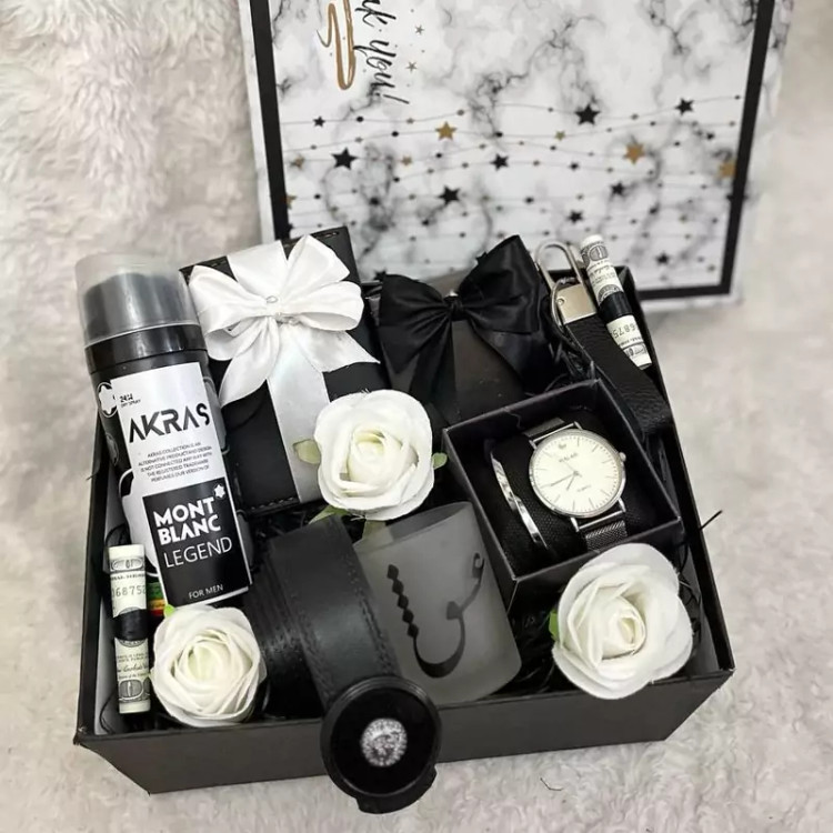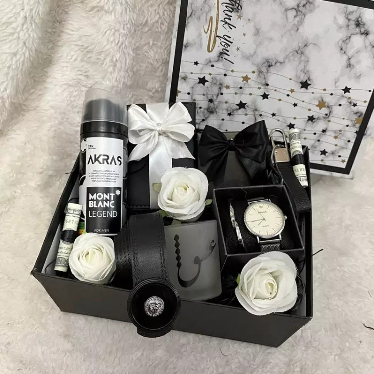 باکس کادو و هدیه مردانه سفید مشکی،ست مردانه تولد،روز مرد،روز پدر ولنتاین،جعبه هدیه شیک مردانه