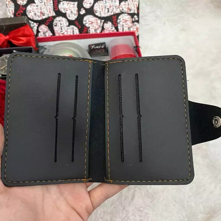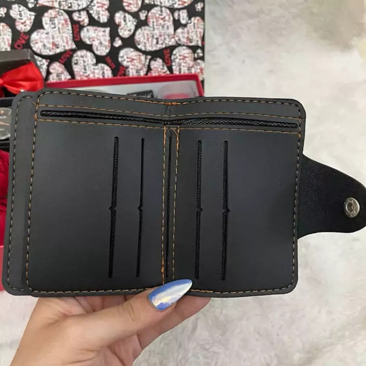 کیف پول چرمی دکمه ای با دیزاین ربان