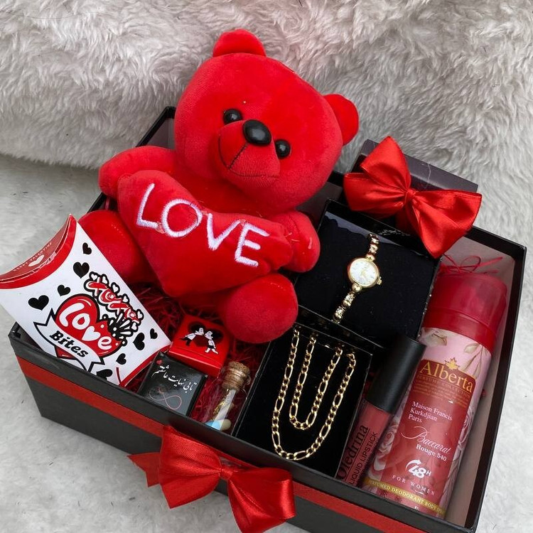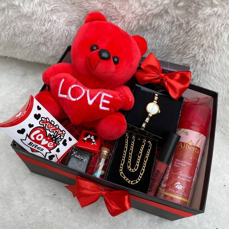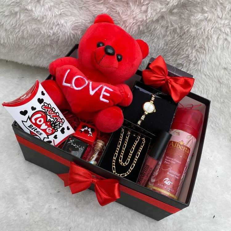 باکس ولنتاین دخترانه،خرس ولنتاین،باکس هدیه ولنتاین زنانه