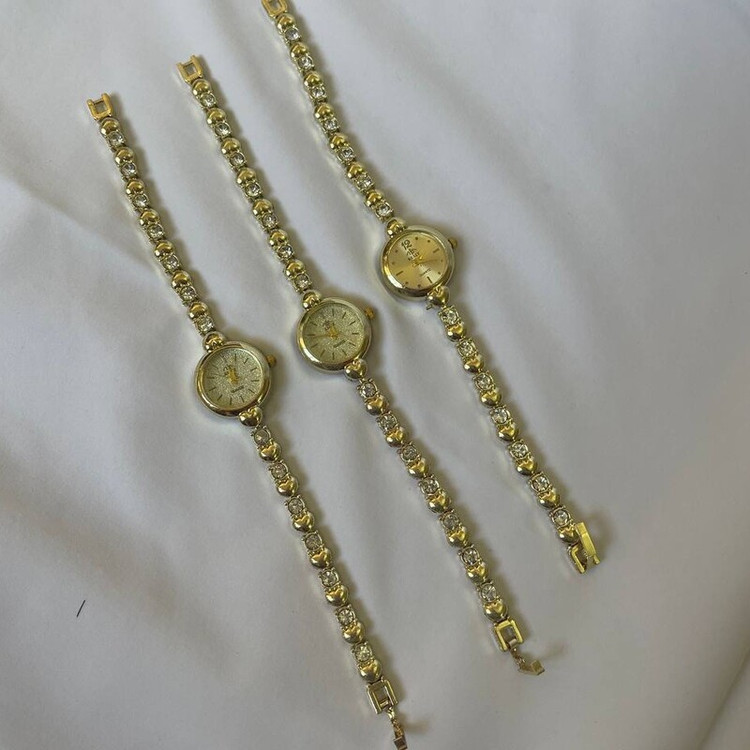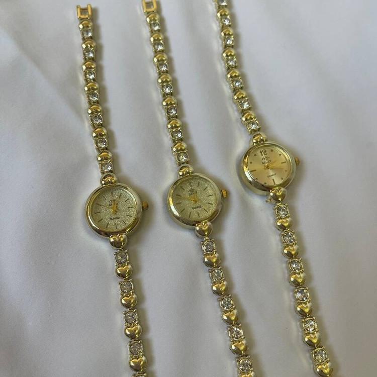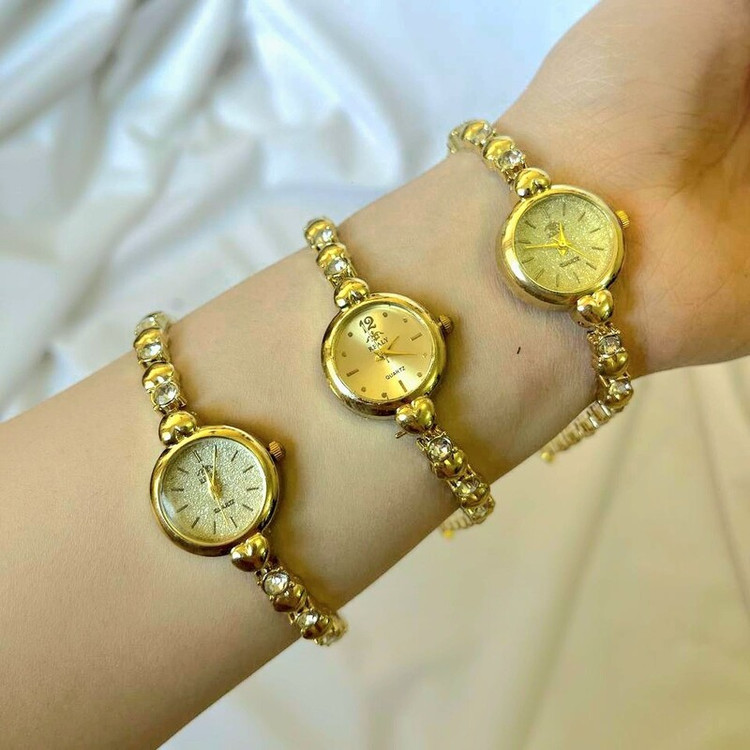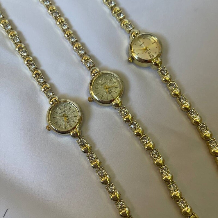 ساعت زنانه و دخترانه استیل بند نگین طلایی