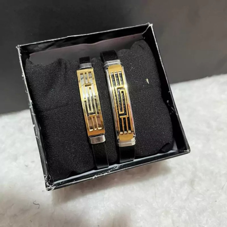 ست دستبند چرمی طبیعی با پلاک استیل رنگ ثابت به همراه جعبه
