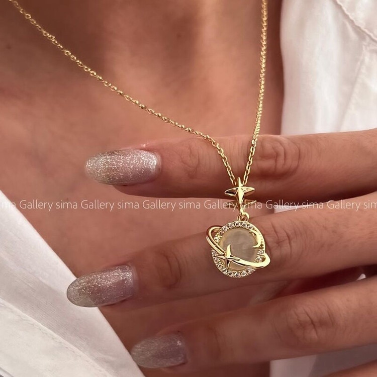 گردنبند زحل نگین دار استیل،گردنبند زنانه سیاره