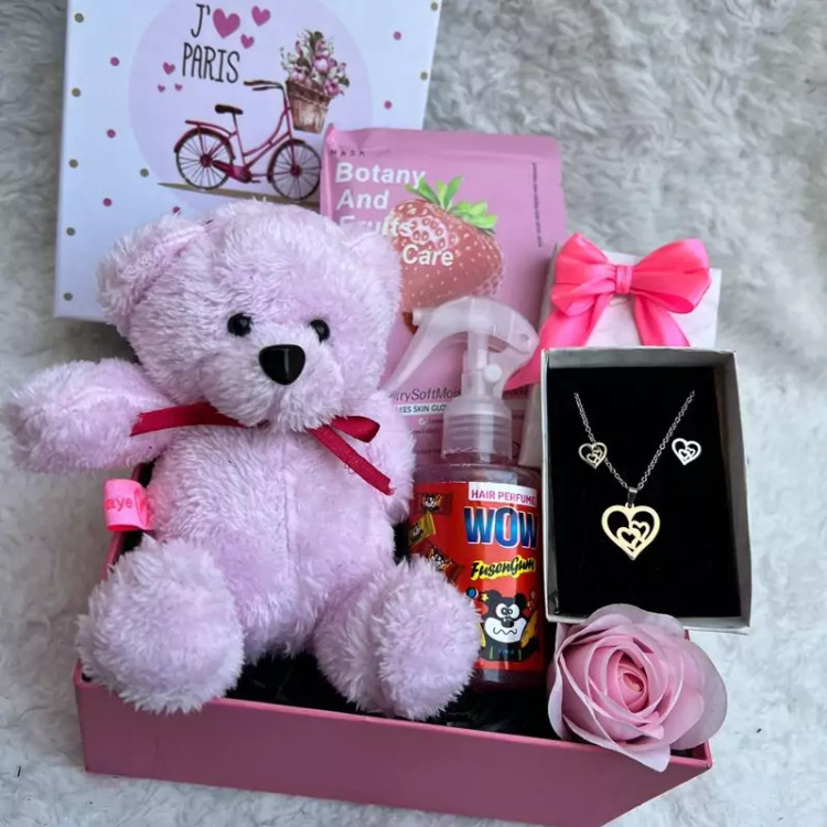 این باکس اقتصادی و با کیفیت شامل: عروسک خرس اورجینال با کیفیت عطر مو شاینی ادامس خرسی ماسک ورقه ای نیمست استیل رنگ ثابت باجعبه(طرح رندوم) گل رز هاردباکس پوشال