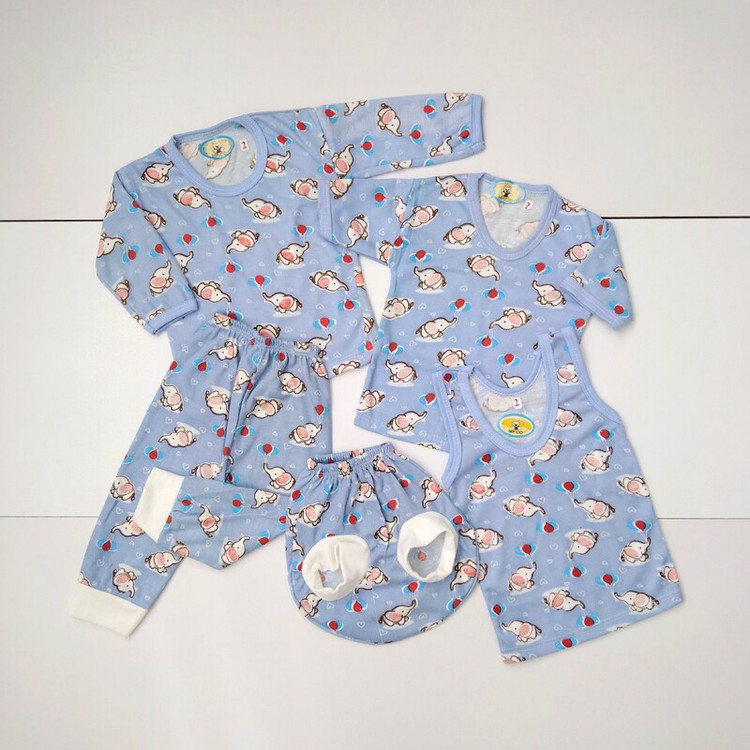 ست لباس پنج تکه نوزادی ، شامل پیراهن آستین بلند ، پیراهن آستین کوتاه ، زیر پوش ، شلوار و شورت