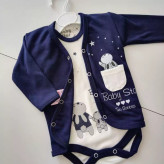 بادی(زیر دکمه): (سرشانه20سانتی متر ، قد از سرشانه تا فاق38.5 ، پهلو22 ، قد آستین9.5)