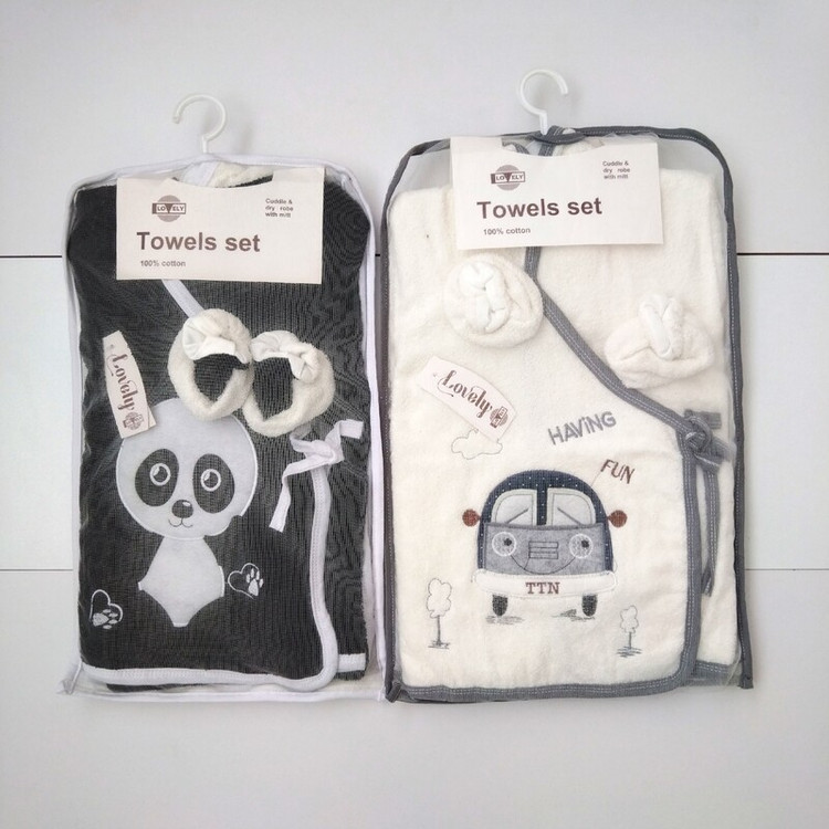 حوله کلاهدار و حوله تن پوش و پاپوش و لیف و حوله دستی کودک حوله کلاه دار نوزاد حوله تن پوش نوزادی ست حوله کودک حوله نوزاد